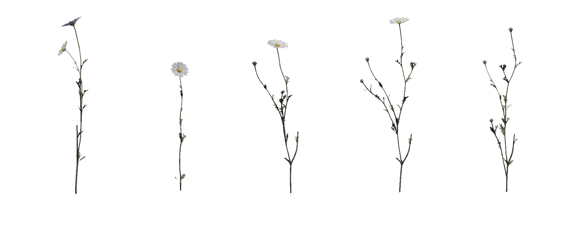 Each model was created using real botanical reference made by me to ensure natural forms, detailed shapes and convincing variation.